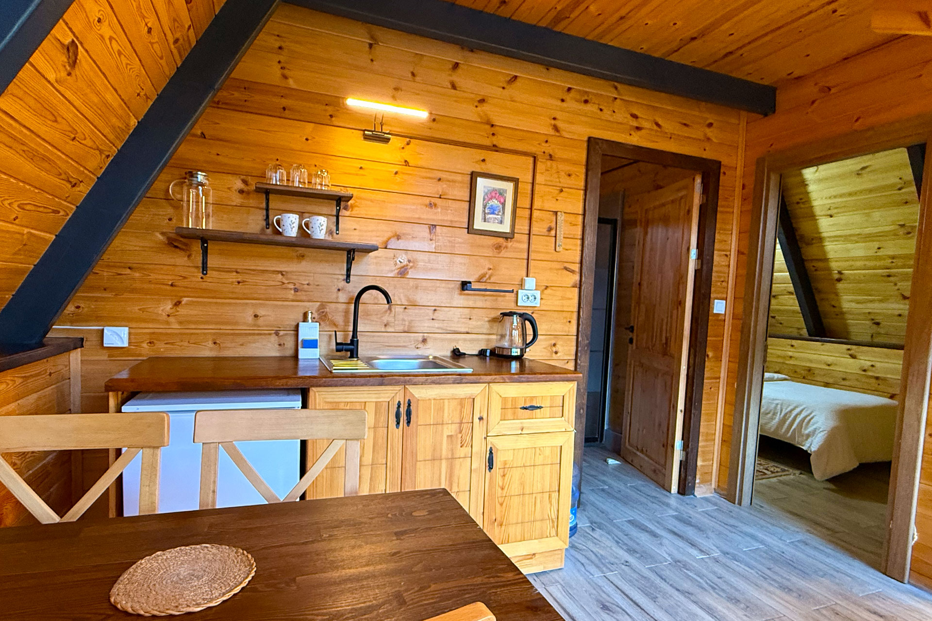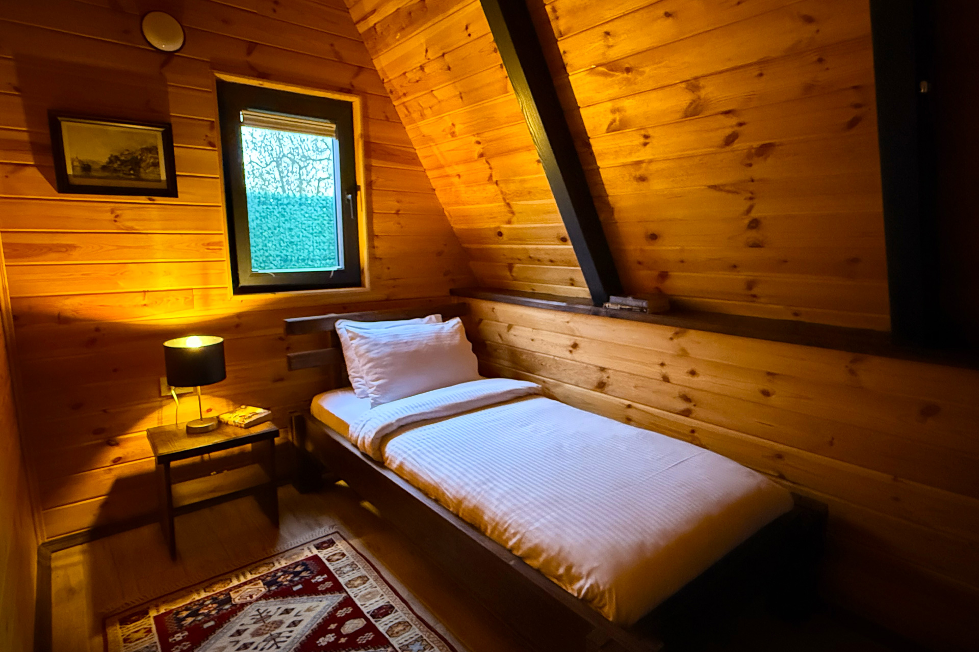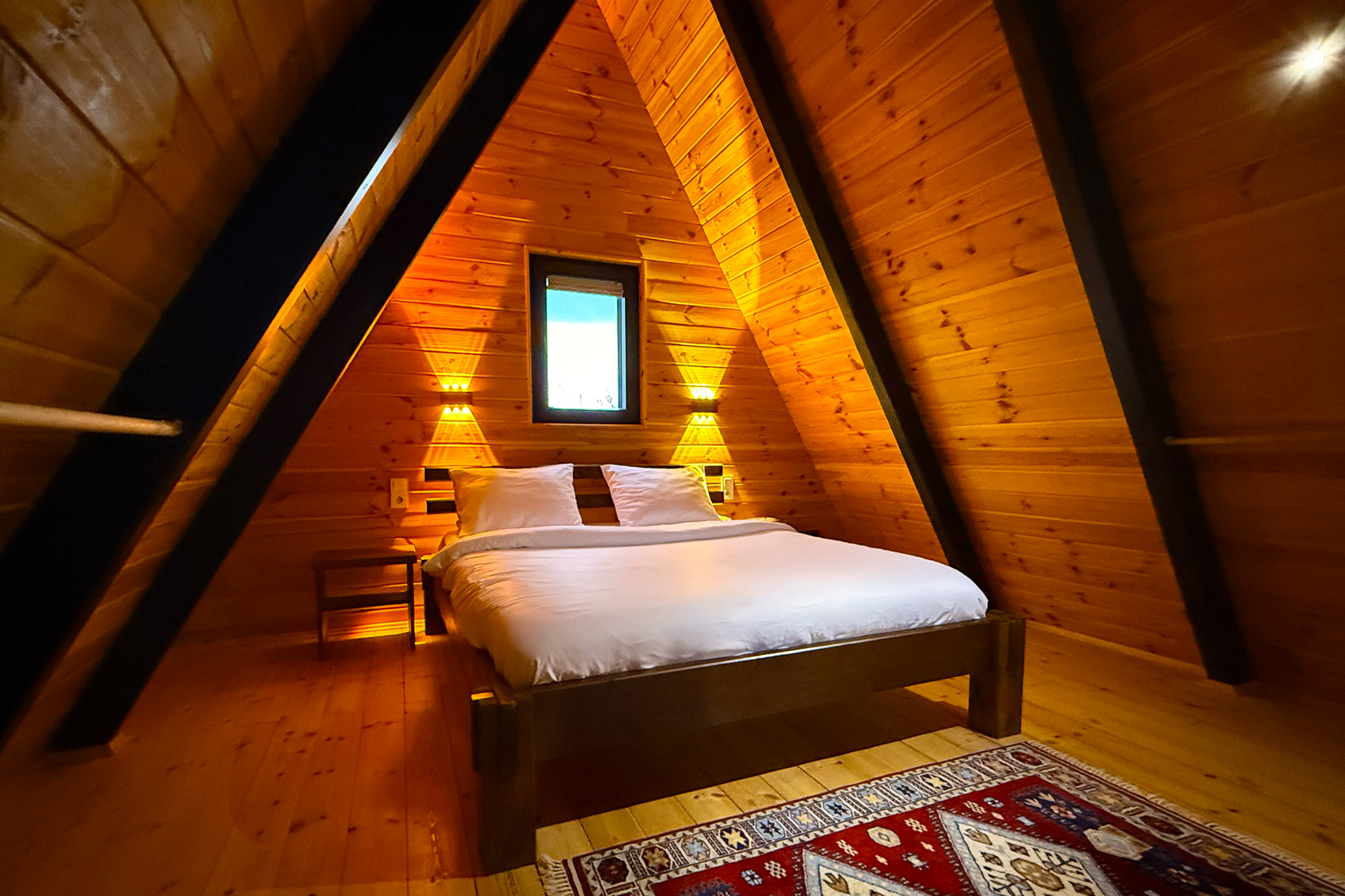 İç mekânda yer alan jakuzi, günün yorgunluğunu keyifle atmanızı sağlarken; 180×200 cm ve 90×200 cm konforlu yataklar, doğanın sessizliği eşliğinde huzurlu bir uyku deneyimi sunar.