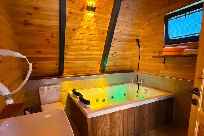 Özel ahşap mimarisi ve doğayla uyumlu tasarımıyla MİRA bungalov, konforlu ve keyifli bir konaklama deneyimi sunar. 250 metrekarelik size özel geniş bahçe, jakuzi, oturma alanı ve çift kişilik yatağın yer aldığı asma katıyla ferah bir yaşam alanı sağlar.