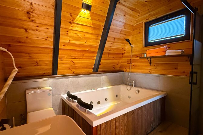Sapanca’nın eşsiz doğasında, size özel bahçenizin ve çift kişilik jakuzinizin keyfini çıkarın. Doğayla iç içe konumlanan özel ahşap tasarımıyla huzurlu ve konforlu bir konaklama deneyimi sizi bekliyor.